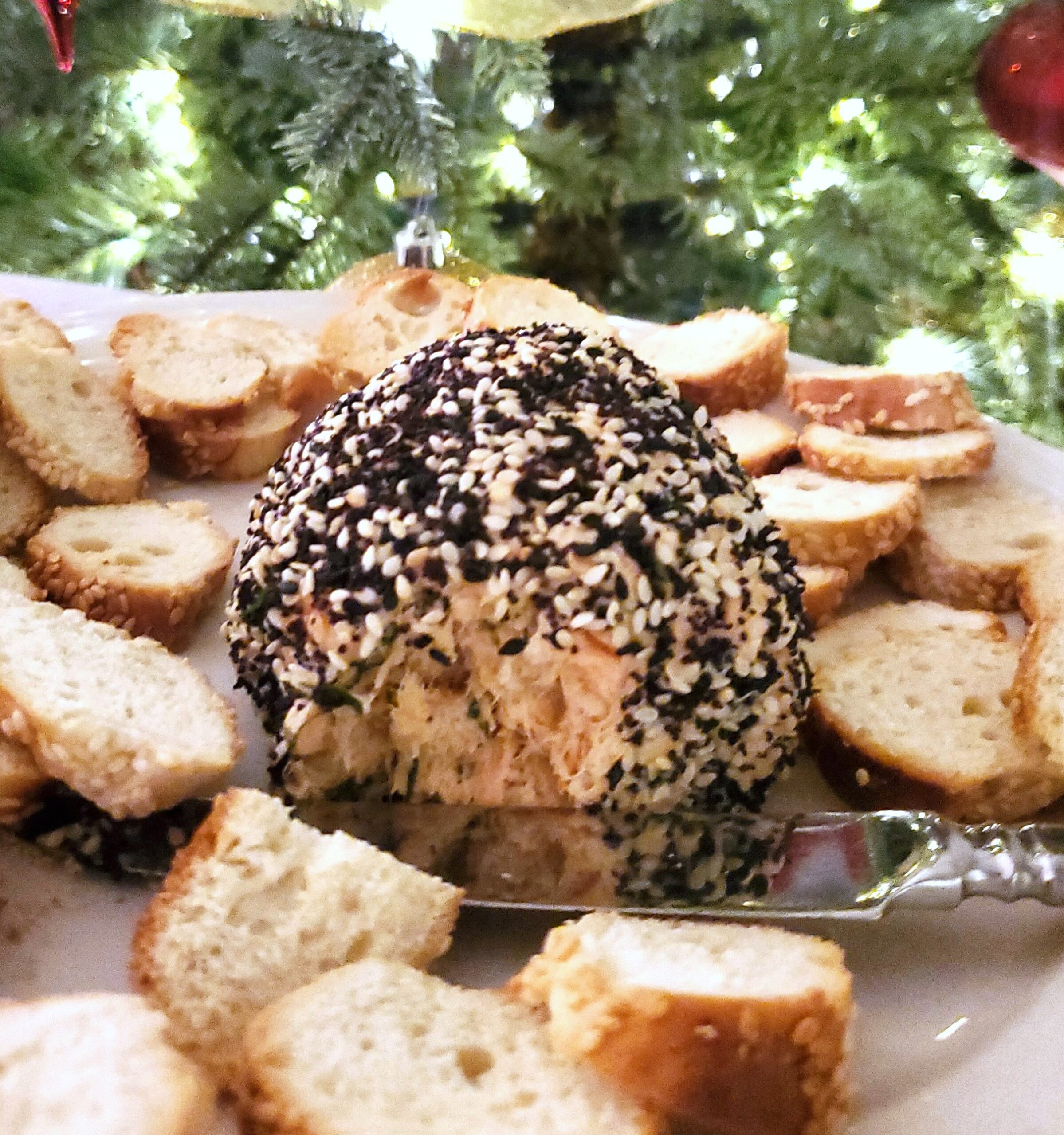 Au moment de servir, former une boule avec le mélange de saumon. Rouler dans le mélange graines de pavot et graines de sésame pour bien enrober. Déposer dans une assiette de service et servir avec les chips de bagel.