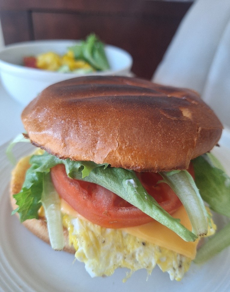 Sandwich déjeuner (ou diner) oeuf, tomate et fromage