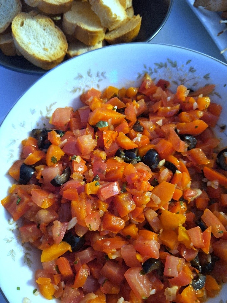 Bruschetta aux poivrons rouges et olives noires