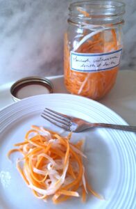 Dans un bol, mélanger les daikons et les carottes. Réserver.