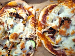 Ajouter les tranches de jambon et les légumes sur les pizzas, et garnir de fromage mozzarella râpé. Cuire au four 20 minutes, ou jusqu’à ce que le dessus et la croûte soient bien dorées.