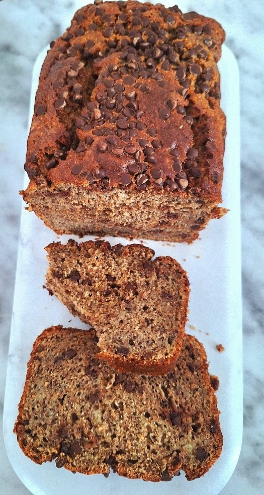 Verser le mélange dans le moule à pain. Garnir de pépites de chocolat supplémentaires si désiré, et cuire de 55 à 60 minutes, ou jusqu’à ce qu’un cure-dent inséré en ressorte propre.
