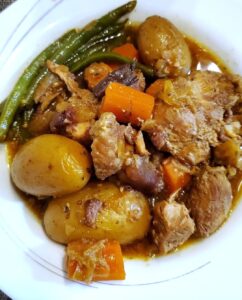 Répartir les pommes de terre, les carottes, les échalotes françaises, les dattes et les haricots autour de la viande. Couvrir et cuire à basse température 6 à 8 heures, ou jusqu’à ce que la viande se défasse à la fourchette.
