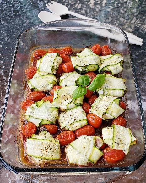 Raviolis de courgettes aux 3 fromages sur nid de tomates confites